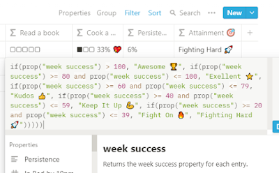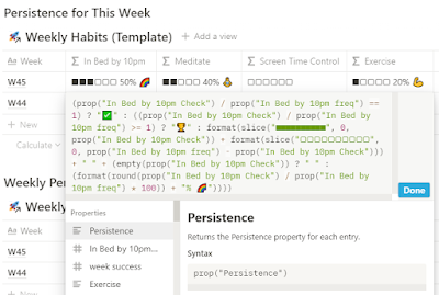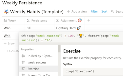 以下的图六、图七和图八,是 Weekly Habits 数据库里的一些简单的程式(formula):